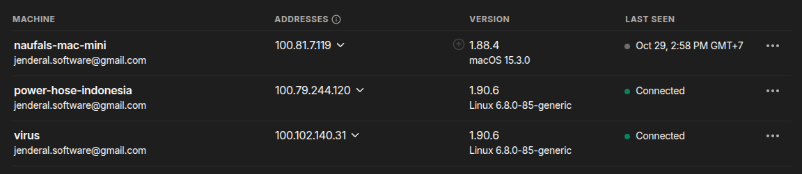 Setelah mencari sana sini, akhirnya saya menemukan sebuah tool bernama TailScale. Tool ini sangat sakti karena memiliki fitur remote access. Cara kerjanya seperti VPN, kita hanya perlu menginstall tailscale di masing-masing perangkat yang ingin dihubungkan. Lalu secara otomatis akan terhubung ke jaringan pribadi bernama Tailnet. Dari situ kita dapat mengakses masing-masing perangkat secara remote.